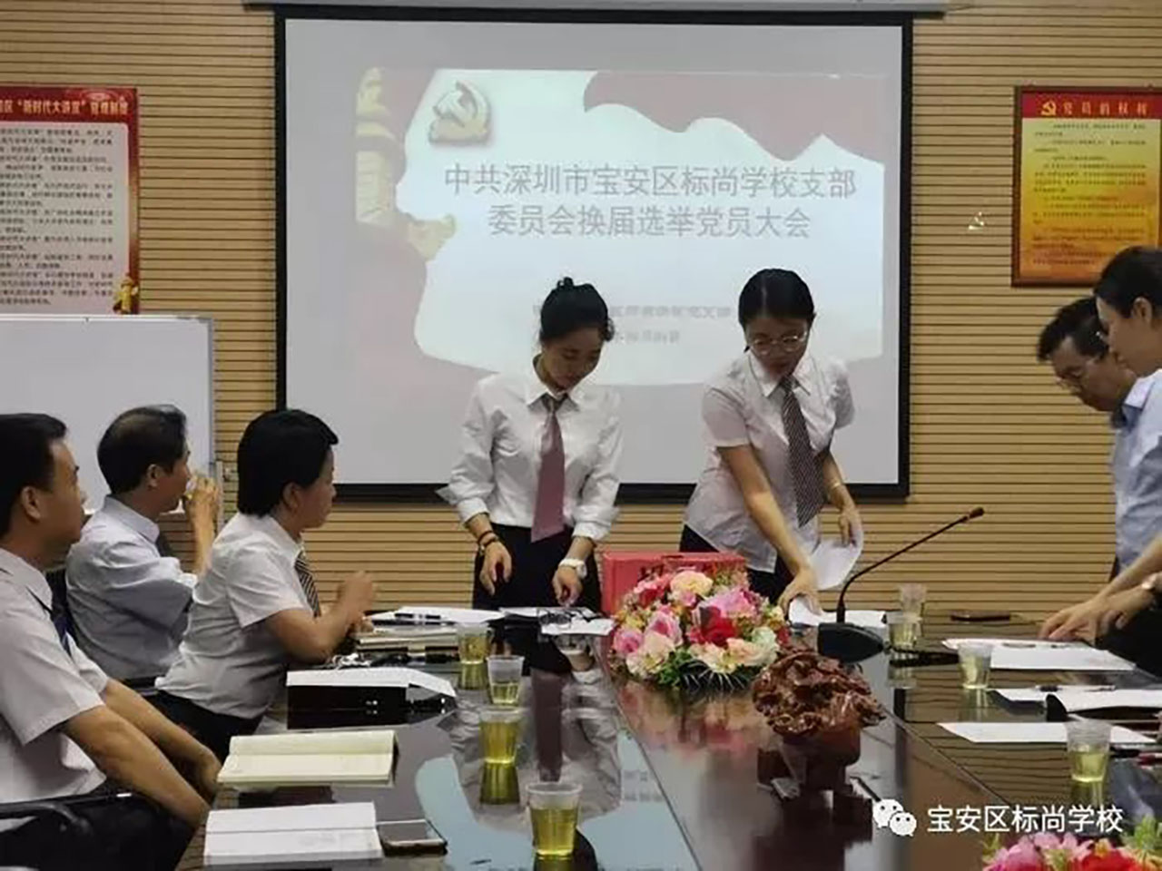 本次支部換屆選舉工作組織嚴(yán)密,程序規(guī)范,進(jìn)展順利。通過(guò)這次換屆選舉大會(huì),全體黨員都得到了一次嚴(yán)肅、認(rèn)真、民主的黨內(nèi)生活的形式和內(nèi)容教育。新當(dāng)選的支部委員表示一定不辜負(fù)大家的信任和重托,繼續(xù)推進(jìn)“兩學(xué)一做”學(xué)習(xí)教育常態(tài)化制度化,發(fā)揮黨組織的政治核心作用,為推進(jìn)學(xué)校教育教學(xué)新發(fā)展提供堅(jiān)強(qiáng)的思想保證、組織保證、作風(fēng)保證和制度保證。標(biāo)尚學(xué)校必將在未來(lái)的各項(xiàng)工作中開(kāi)創(chuàng)新局面,續(xù)寫新篇章!