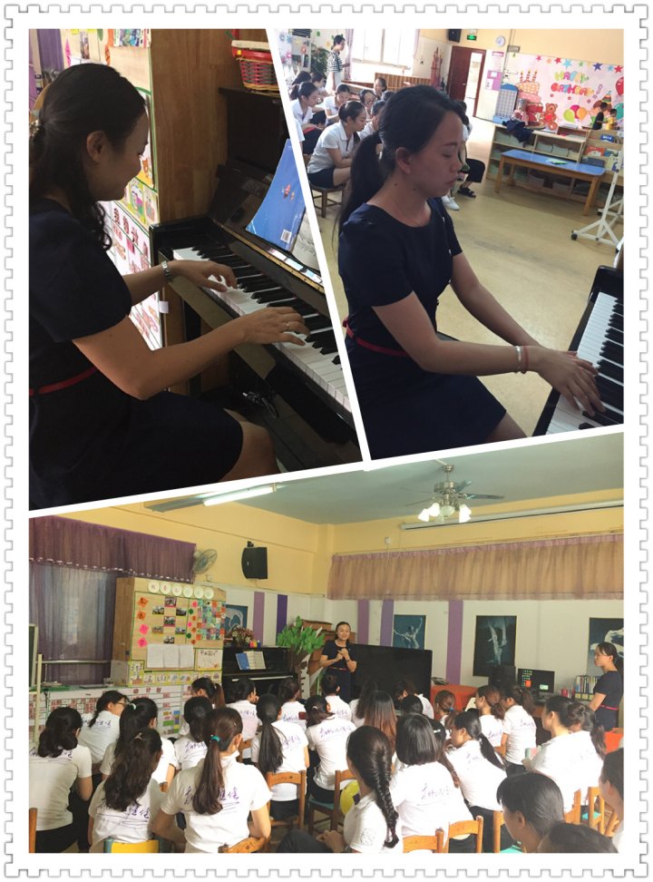 在整個(gè)活動過程中,老師們都以熱情飽滿的情緒,盡情的發(fā)揮,隨著指尖彈奏著琴鍵配以清脆的歌喉,在陳主任彈奏的“成都”和李園長獻(xiàn)上的一首“牽手”為此次活動拉下了序幕。最后,李園長對本次活動做了簡要的小結(jié),指出了老師彈奏過程中存在的問題,并對參加考核的部分老師提出了如何提高基本技能的建議。