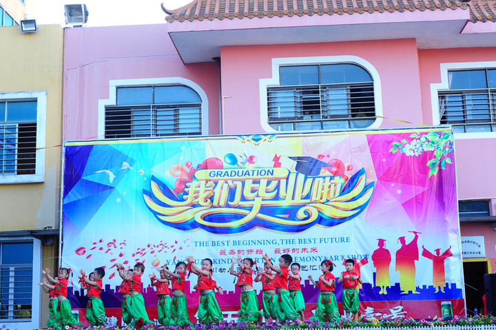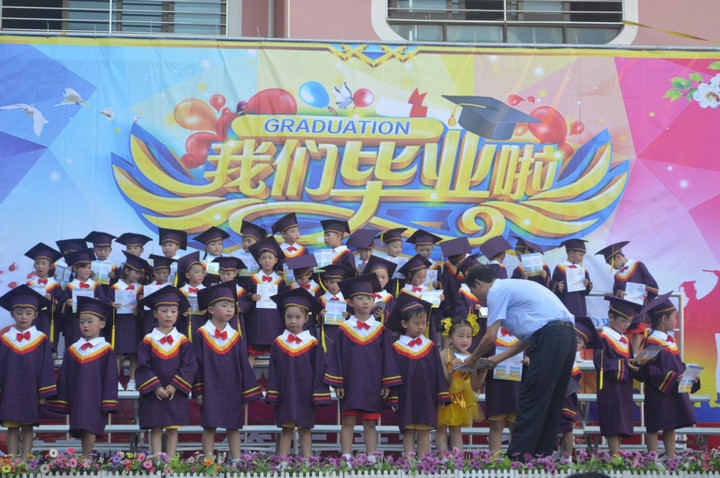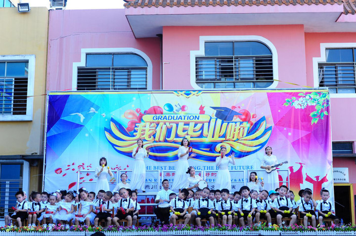 在同歡在歌頌惜別、感念師恩、憧憬未來、跨越起航下,我們開啟活動的第二篇章——回憶經典.放飛童年。在這個畢業(yè)典禮活動上,大、中、小班的幼兒從中感受畢業(yè)的氛圍,同時為大哥哥大姐姐送上一份祝福。共演出節(jié)目8個,有舞蹈、英語故事表演、三句半、歌表演等形式于一體,不管是在選服飾上還是音樂上都是懷舊經典的。同聚的今天,老師和中小班的弟弟妹妹也帶來了蘊含經典的祝福,希望我們大班畢業(yè)的孩子能夠緬懷過去,展翅未來。