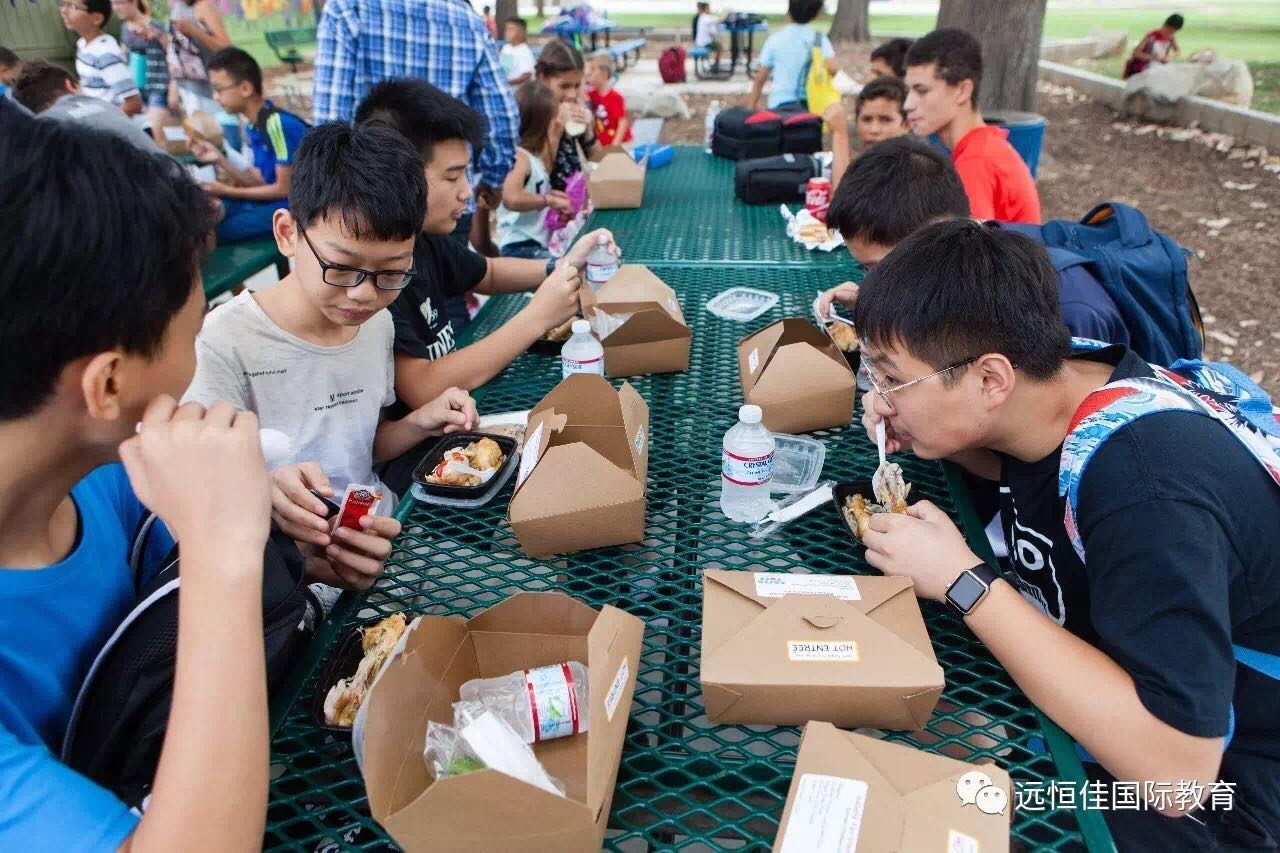 中午在露天的環(huán)境下享受美國特有的西式便當(dāng)午餐,對于同學(xué)們來說也是特別新鮮。