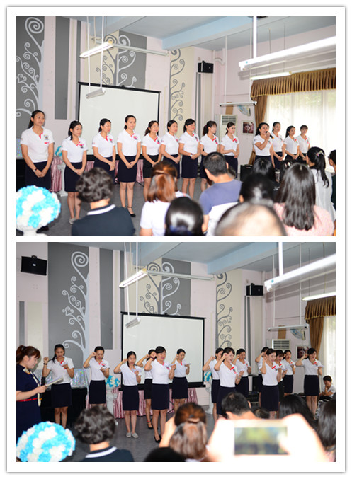 我們幼兒園老師們上臺(tái)做簡(jiǎn)單的自我介紹以及宣誓