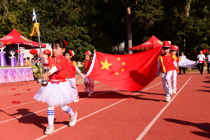 在主持人一聲“閃亮登場(chǎng)”的口令中,孩子們踏著歡快的步伐入場(chǎng)了。只見(jiàn)他們每個(gè)人的臉上都掛著喜悅的笑容,揮舞著手中的道具,精神抖擻的走過(guò)主席臺(tái)。大班孩子們的整齊有力,中班小朋友們的活力四射,小班寶寶們的天真可愛(ài)。