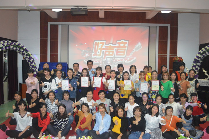 教師組老師做好了精心的準(zhǔn)備,化上美美的妝容,閃亮登場(chǎng),老師們深情演唱了《誰(shuí)明浪子心》、《天亮了》、《千年之戀》、《時(shí)間煮雨》、《她說(shuō)》、《小幸運(yùn)》贏得了大家的陣陣掌聲,現(xiàn)場(chǎng)氣氛熱鬧非凡。經(jīng)過(guò)評(píng)委老師們公平、公正的評(píng)判,最后評(píng)出了“燕川園好聲音”。