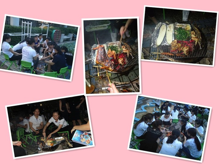 夢(mèng)想是石,敲出星星之火;夢(mèng)想是火,點(diǎn)燃熄滅的燈;夢(mèng)想是燈,照亮夜行的路,夢(mèng)想是路,引你走向黎明。夢(mèng)想,是我們飛翔的翅膀,伴隨我們開始踏上新的征程,2017年6月23日遠(yuǎn)恒佳花園幼兒園全體教職工歡聚在一樓大操場(chǎng)共同迎來(lái)上半年教職工生日會(huì),本次生日會(huì)共有25位壽星,在活動(dòng)中老師們自己動(dòng)手生火、自己烤食物,雖然燒烤經(jīng)驗(yàn)不足常會(huì)有烤焦的現(xiàn)象,在活動(dòng)過(guò)程中不時(shí)有惋惜的聲音出現(xiàn)“哎呀,我的火腿腸又烤黑了”、“哎呀,我的雞翅著火了”,當(dāng)然也有一些燒烤高手在旁邊為不會(huì)燒烤的老師們服務(wù),讓她們也能享受美食的美味。伴隨著一首《有你真好》壽星們一起手拉手共同歡慶在一起的美好時(shí)刻,一起圍成圓圈唱生日歌、許愿,愿所有的壽星們心如所愿。本次自主燒烤生日會(huì)活動(dòng)的舉辦增強(qiáng)團(tuán)隊(duì)的凝聚力,體現(xiàn)以人為本的管理文化,加強(qiáng)與員工的溝通,進(jìn)一步激發(fā)員工的工作熱情,增強(qiáng)員工歸屬感,豐富員工生活。下面讓我們一起回顧這美好的時(shí)刻吧!