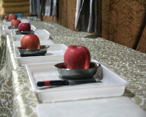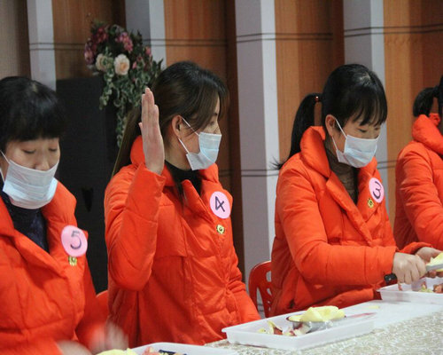 在這一個環(huán)節(jié)中,老師們做到了:皮兒薄、分塊均勻、擺放藝術。
