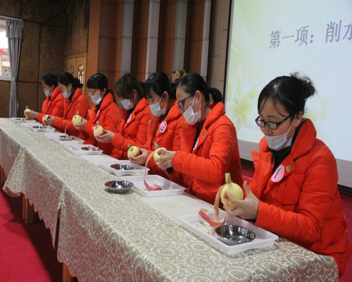 時間: 2017-12-29 作者:yuanhengjia 閱讀次數(shù): 27462017年12月27日上午9:30分,長壽區(qū)遠恒佳實驗幼兒園、遠恒佳陽光園、遠恒佳菩提印象園全體保育老師在遠恒佳教育集團學前教育中心長壽分部的組織下進行了削水果、疊被子兩項技能競賽。