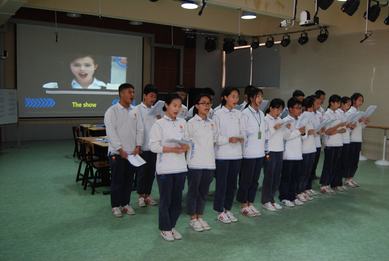 首先,公明中英文學校國騰老師主講一堂八年級小組合作研討課。課前由7,8年級部分同學展示了英語歌曲《the show》,孩子們自信的演唱、地道的發(fā)音、優(yōu)美的語調(diào)和歡快的旋律博得老師們陣陣掌聲。