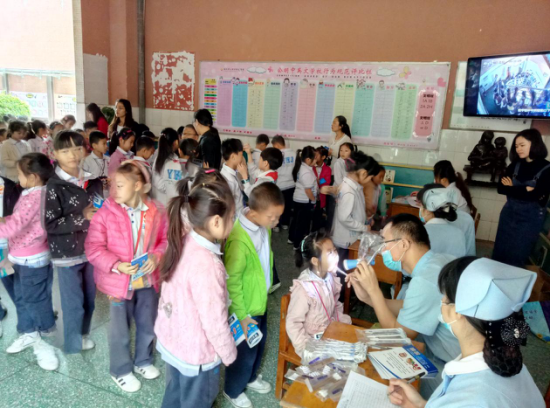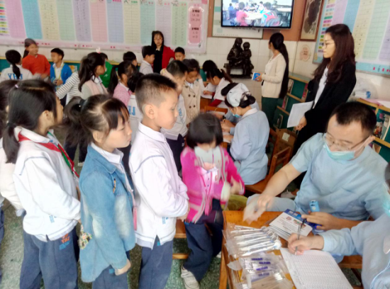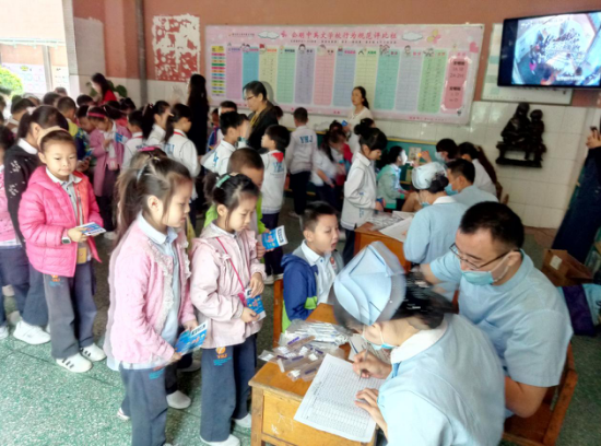 檢查過程中,學生在班主任的帶領下,在后勤劉冬偉主任和一二年級熊會容主任指揮領導下,以班級為單位有序的進行口腔檢查活動。醫(yī)護工作人員也非常仔細認真的對每一位學生進行口腔檢查和登記,并給學生發(fā)放了《免費窩溝封閉預防齲齒》宣傳單及《窩溝封閉,遠離齲齒—致家長的一封信》,為后續(xù)免費為適齡兒童做窩溝封閉奠定了良好的基礎。
