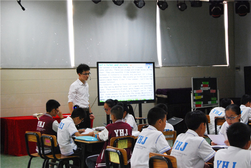 袁老師的課為一節(jié)聽(tīng)說(shuō)課,選自七年級(jí)上冊(cè)Unit 4 The four seasons,課型為L(zhǎng)istening and speaking。課上,袁老師用流利的英語(yǔ)與學(xué)生交流,可以說(shuō)師生間全程零困難溝通。袁老師反復(fù)讓學(xué)生跟讀模仿錄音,及時(shí)糾正學(xué)生的語(yǔ)音語(yǔ)調(diào)。