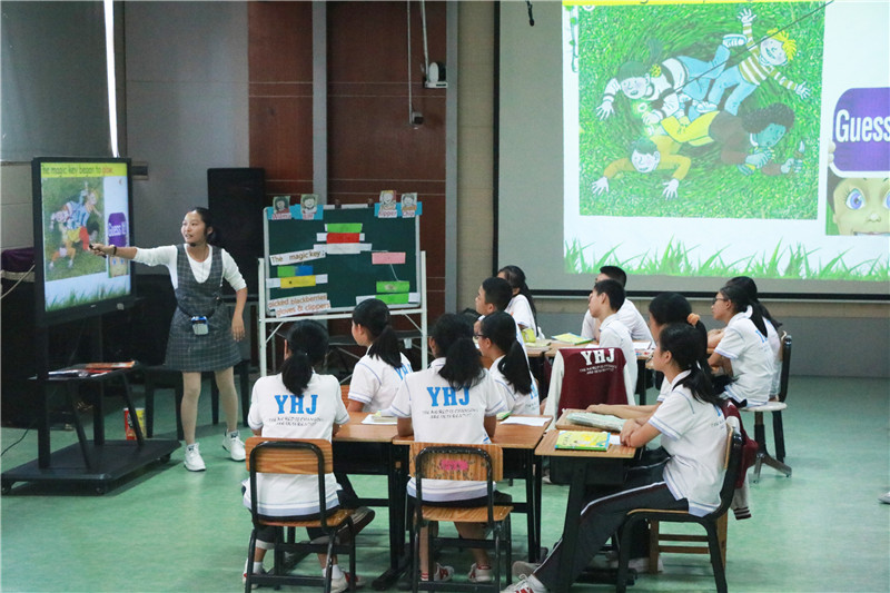 不同于常規(guī)教材的教學(xué),楊老師運(yùn)用《典范英語(yǔ)》中故事給學(xué)生們上了一堂生動(dòng)有趣的英語(yǔ)課。故事話題是我們從小就聽(tīng)過(guò)的睡美人(Sleeping Beauty)的故事。一段睡美人視頻的播放又引出了學(xué)生們的童話記憶,也對(duì)這個(gè)故事充滿好奇:它會(huì)有什么不一樣呢?楊老師在課堂上不斷讓學(xué)生讀,聽(tīng)和說(shuō),強(qiáng)化學(xué)生的口語(yǔ)能力。故事脈絡(luò)的總結(jié)與復(fù)述,加強(qiáng)學(xué)生邏輯表達(dá)能力。最后楊老師讓學(xué)生自己發(fā)揮想象,想出不同的方法來(lái)喚醒公主,學(xué)生的表現(xiàn)的想象力都很精彩。