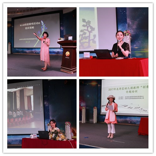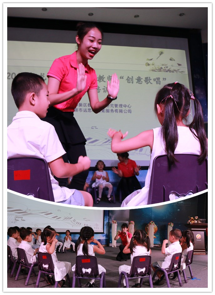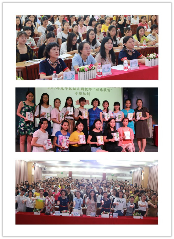 本次培訓(xùn)由龍華區(qū)教育科學(xué)研究管理中心主辦,遠(yuǎn)思明教育培訓(xùn)負(fù)責(zé)組織。全區(qū)四百余名一線幼兒教師參加了培訓(xùn),培訓(xùn)按照街道劃分龍華、觀瀾、觀湖、福城2017年6月6日-9日(三天),民治、大浪21日--23日(三天),共兩場(chǎng)次。培訓(xùn)內(nèi)容囊括幼兒園歌唱活動(dòng)相關(guān)理論、現(xiàn)場(chǎng)課例觀摩、創(chuàng)意歌唱游戲工作坊、教研交流等,深受老師們的認(rèn)同。通過培訓(xùn)幫助幼兒園教師厘清歌唱活動(dòng)的內(nèi)涵,了解創(chuàng)意歌唱活動(dòng)的組織流程,以及創(chuàng)意歌唱活動(dòng)游戲創(chuàng)編的方法與策略,提升教師對(duì)幼兒園創(chuàng)意歌唱活動(dòng)的設(shè)計(jì)與組織能力。