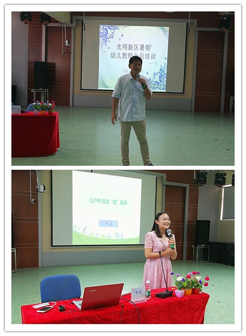 美籍華人教育專家蔡偉忠博士《在行為中落實師德》的講座,是關(guān)于教師職業(yè)幸福感的心路歷程分享,其中“改變不了環(huán)境,可以改變心態(tài);選擇不了父母,可以選擇朋友;決定不了智商,可以提高情商”三句話,讓在場的老師們受益匪淺。蔡偉忠博士的講座即生動有趣又很接地氣,與在座的學員產(chǎn)生積極地互動與共鳴;教科研中心朱文靜教研員的《幼兒園環(huán)境的規(guī)劃與利用》講座,幫助老師們規(guī)范幼兒園室內(nèi)外環(huán)境的合理規(guī)劃、如何整合園所現(xiàn)有資源提供了科學的指引;孫曼麗老師的《美術(shù)活動與藝術(shù)空間的創(chuàng)設》分享,讓全體老師受益匪淺,產(chǎn)生立刻想回到幼兒園對自己園的美術(shù)室進行改造的沖動;段帆老師《一日生活皆課程》的講座,再次幫助老師們梳理生活中的教育契機與教育方法;趙永忍老師的《幼兒體能活動的設計》分享,現(xiàn)場試教,生動有趣,學員感嘆:沒想到一節(jié)體能活動竟然可以如此豐富有效;唐艷老師的《一日活動的組織策略》講座,為老師們開展幼兒園日常各類活動,提供了科學的指導;而來自公明第二幼兒園的李晶園長的《讓戶外活動“動”起來》的講座,從戶外活動的重要性、戶外活動的組織策略進行了分享學習,案例豐富,實操性強,讓教師們充分認識到戶外活動的組織同樣重要,同時了解從環(huán)境分設到活動組織的有效策略。