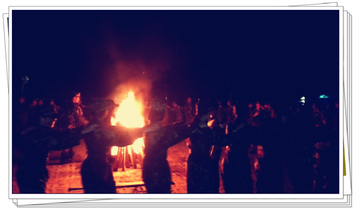 來(lái)到的第一天晚上的晚餐,老師們自己動(dòng)手開(kāi)小灶,分工合作、展示廚藝!飯后不久篝火晚會(huì)開(kāi)始,大家圍著火堆轉(zhuǎn),想盡辦法讓教官表演,老師們都格外歡樂(lè):