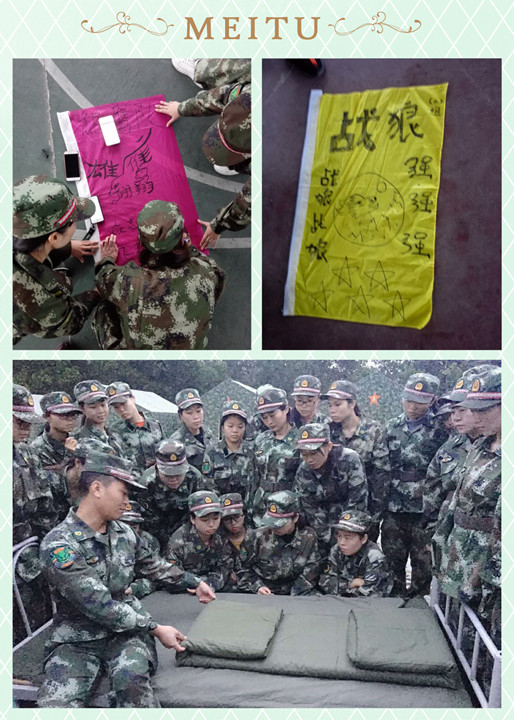 周六這一整天的活動(dòng)讓老師們即有驚險(xiǎn)刺激,又有挑戰(zhàn)和毅力,也有感動(dòng)和眼淚。早晨起來(lái)學(xué)習(xí)疊“豆腐塊”被子、做早操、學(xué)習(xí)隊(duì)列軍姿、拉歌比賽、信任背摔、下午CS槍?xiě)?zhàn)和“畢業(yè)墻”: