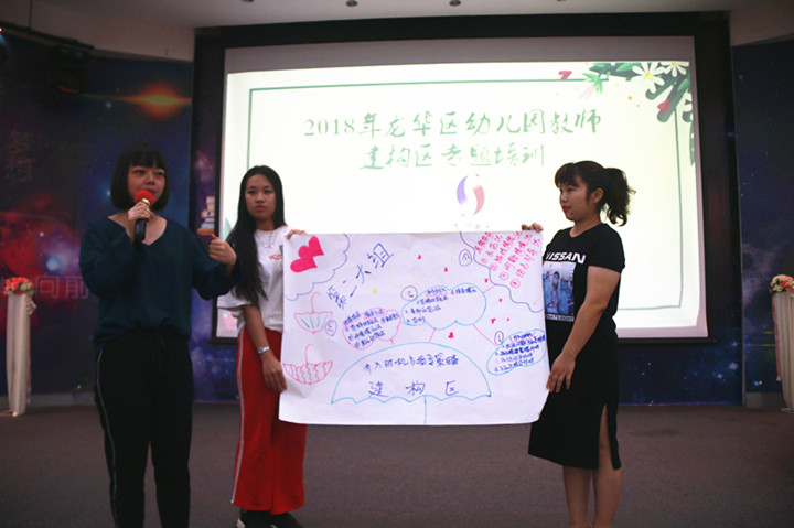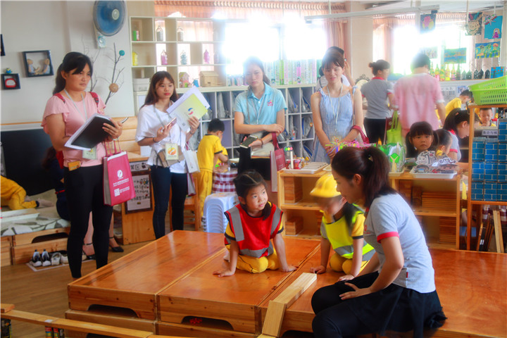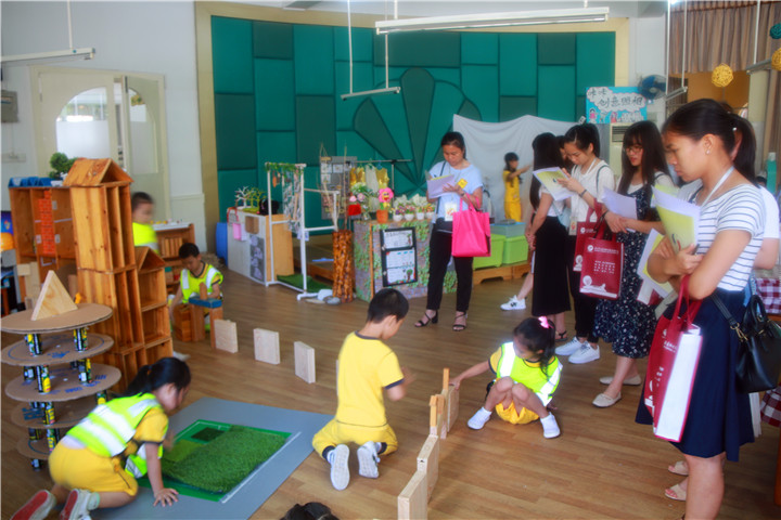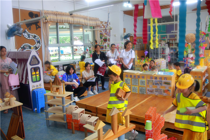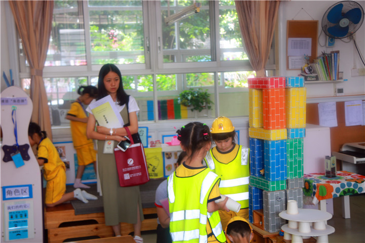 深圳市龍華中英文實驗學(xué)校幼兒園在此次跟崗全園同時開放,跟崗成員在跟崗之前組成三大組分別進(jìn)入小、中、大班的建構(gòu)區(qū)進(jìn)行觀摩、學(xué)習(xí)。在觀摩中間接引發(fā)思考,帶著問題組內(nèi)討論,組與組之間交流,發(fā)表自己的想法與觀點,直接獲取經(jīng)驗!
