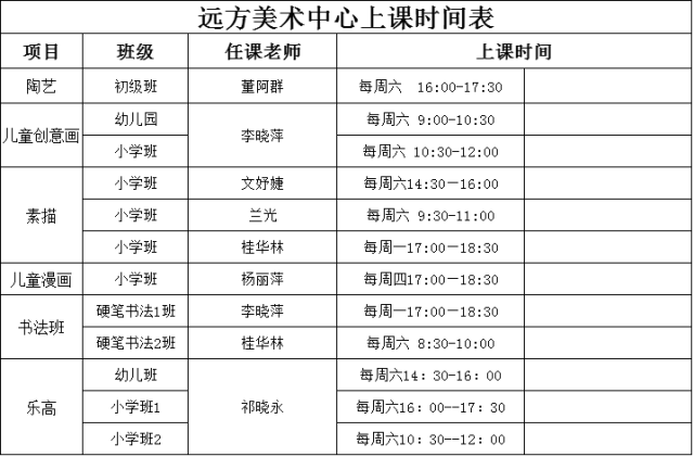 遠(yuǎn)恒佳國(guó)際教育城藝術(shù)中心2017春季課程安排