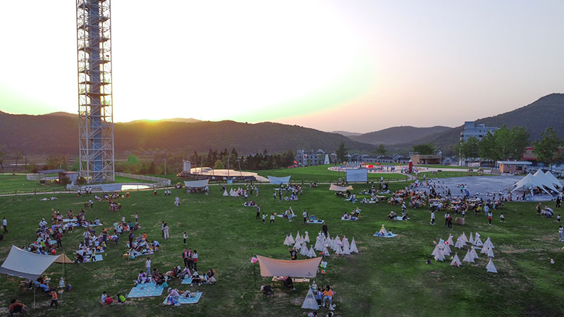 星空露營(yíng)園以帳篷露營(yíng)、戶外美學(xué)、潮流造趣和內(nèi)容聯(lián)合等元素,開(kāi)創(chuàng)了全新的戶外生活方式。我們整合了營(yíng)地、景區(qū)、休閑、研學(xué)、運(yùn)動(dòng)、玩樂(lè)、主題活動(dòng)等模式,推出了載人無(wú)人機(jī)、太空VR體驗(yàn)館、蹦極塔、燒烤區(qū)、篝火晚會(huì)、一九酒吧、星空音樂(lè)吧等項(xiàng)目,滿足不同人群的山野體驗(yàn)、精致露營(yíng)、親子游樂(lè)、文青聚集、潮玩打卡等需求。